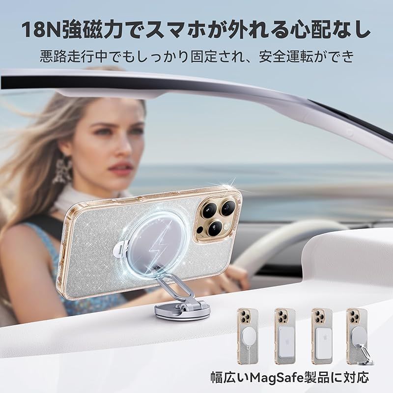 透き通る上質感 定点360°回転 CASEKOO iPhone 16 Pro Max 用ケース キラキラ クリア 米軍規格保護 フィット感 MagSafe対応 最大25W急速充電対応 横縦両立 角度自在 超強磁力 耐衝撃 高耐久性 ラップホール付き 透明 黄 TRADESMANFINDER_CO_UK